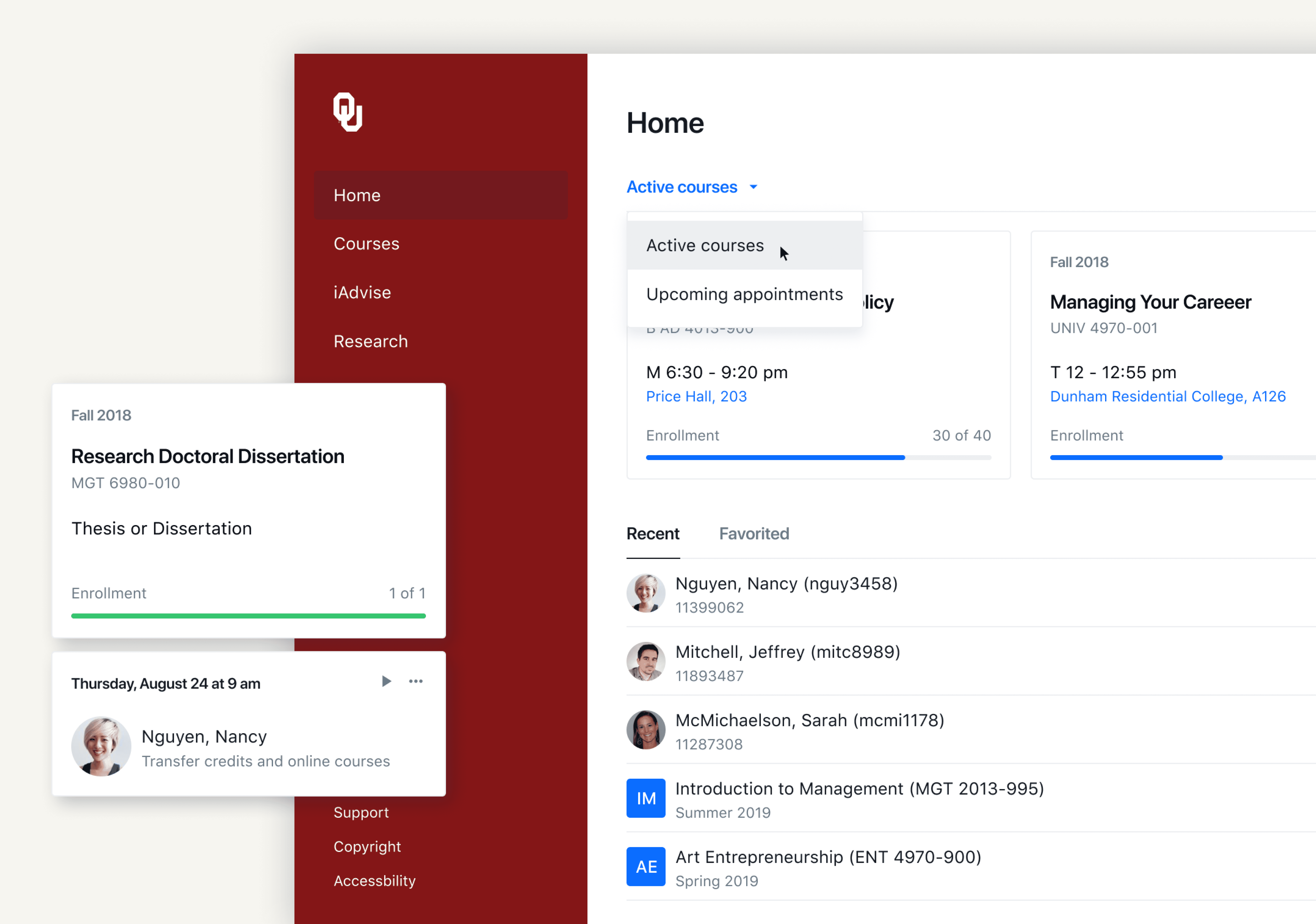 Enhanced the University of Oklahoma’s digital portal experience, creating a more intuitive interface for students and faculty and implementing a design system to ensure consistency and maintainability.